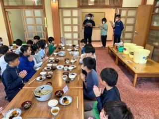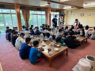 朝食の時間です。今日は登山を始め、沢山の活動があります。しっかり食べて、元気に活動しましょう。