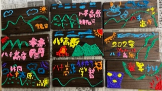 短い時間でしたが、林間学習の思い出を焼き板に描きました。