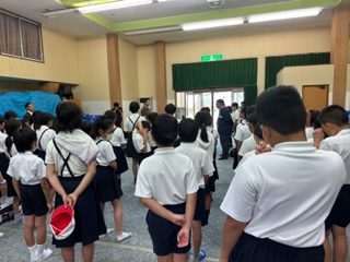 閉舎式を行いました。全ての児童が今回の林間学習を楽しかったと答えました。宿舎グリーンロッジの方々に感謝の気持ちを伝えました。