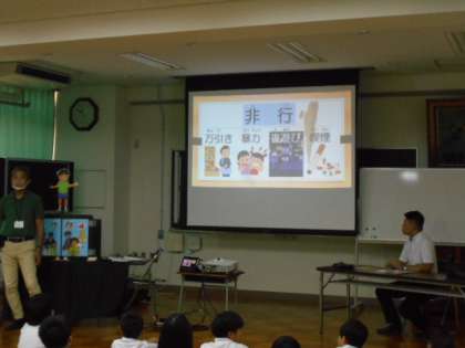 5年生「非行防止教室」が行われました。飲酒やタバコ、万引きなどの問題に手を染めないように、どのようにして自分自身の「心のブレーキ」をかけるのか、ペープサートやパワーポイントを使って中央少年サポートセンターの方に教えてもらいました。
