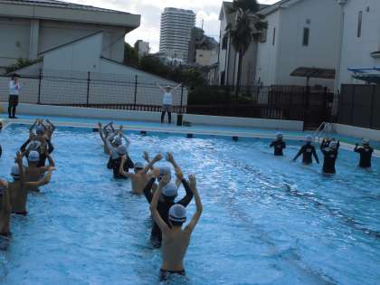 水泳の授業も残りわずかです。今日はクロールや平泳ぎを中心に練習しました。特に平泳ぎの足は難しいですね。一生懸命練習を頑張りました。