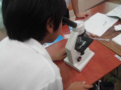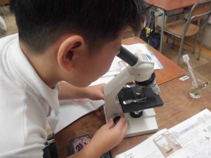 今日は「気こうの観察をしてみよう」という学習でした。ホウセンカだけでなく気こうは身近な植物にもあります。今日は、ツユクサの気こうを観察しました。