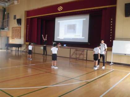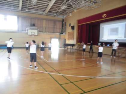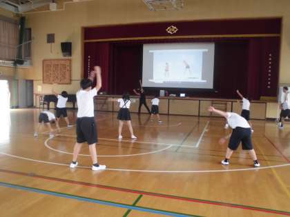運動会のラジオ体操に向けて、運動委員会が頑張っています。まだまだ動きはそろっていませんが、毎日頑張って練習します。