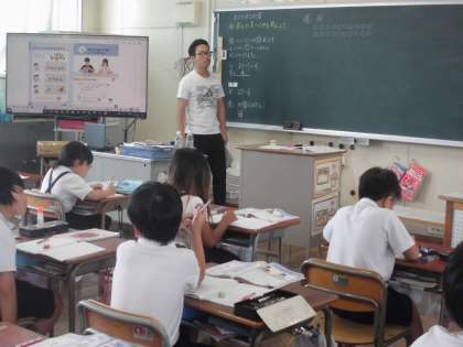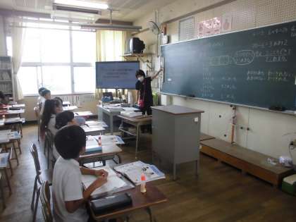 「スーパーボールが20個あります。1袋に6こずつ入れると何袋できますか?」です。「今までの問題と違うところはどこかな?」「かけ算の何の段を使って答えを求められるかな?」〇を書いて考えました。