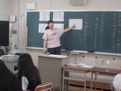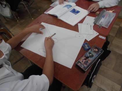 「海のいのち」の学習です。今日は、登場人物の人物像を考え、人物関係図にまとめる活動です。グループで話しあって、人物関係図を作っていきました。