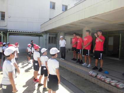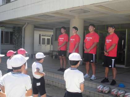 トップアスリートの「NTTドコモレッドハリケーンズ」の選手が、5・6年生にラグビーをはじめ、運動の楽しさを教えに来てくれました。