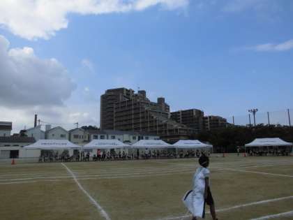 とっ!!突然の雨! みんなテントの下へ!!なかよくテントに入りぬれずに済みました。