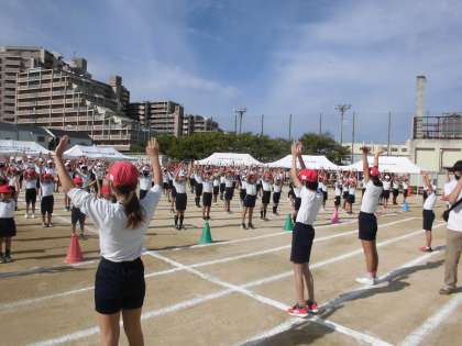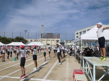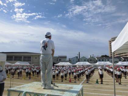 快晴の空のもと、日曜日に続き、運動会が行われました。開会式の様子です。