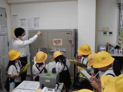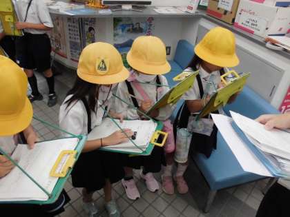 2年生の町探検では、自分たちの地域の様々な人やもの、施設等について見学したり、インタビューをしたりして、体験したり探検したりすることを通して、地域にある様々な魅力的なものやこと、それを支える人の営みや思いに気付き、親しみや愛着を持ち、進んで適切にかかわりながら生活していこうとする態度を養います。