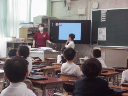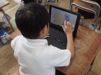 1人1台PCを使って、プログラミングの学習です。友だちに問題を出すプログラミングも考えました。