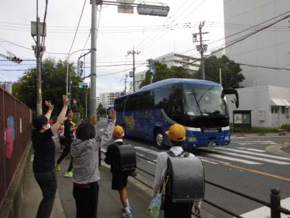 1泊2日の6年生修学旅行です。淡路島方面です。全員元気に学校を出発しました。