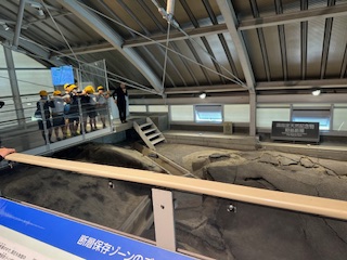 兵庫県南部地震によってあらわれた断層を見学しています。