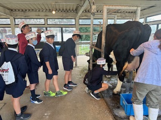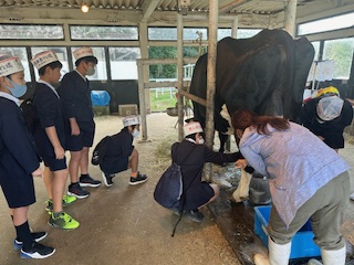 予定通り淡路島牧場に到着し、初めに乳しぼり体験をしました。