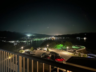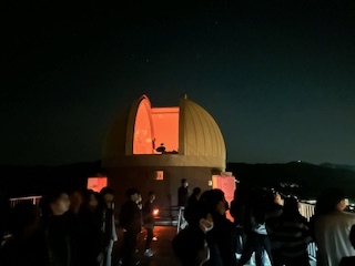 天体観測の時間です。天文台と美しい夜景、沢山の星が見えます。