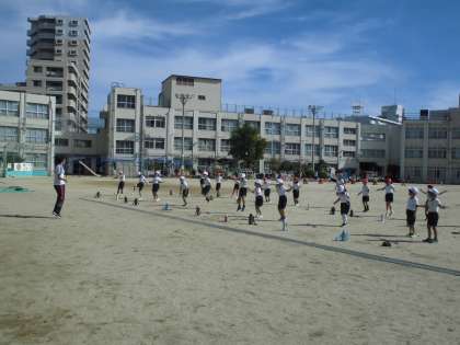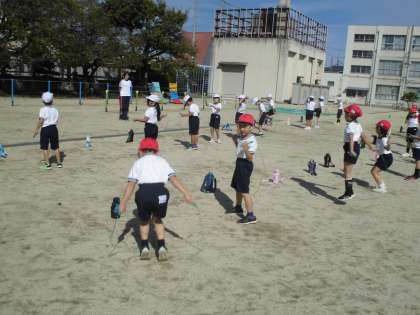 今日は初めてみんなでなわとびをしました。リズムよく前とびや後ろとびができました。