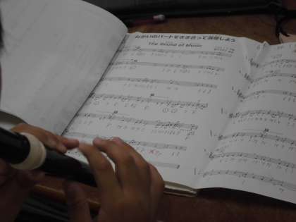 たがいのパートを聴き合って演奏しようの学習です。「The Sound of Music」の曲をリコーダーで演奏しました。