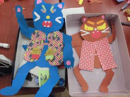 「どんぐりと山猫」の作品作りです。かわいらしい猫がいっぱいです。