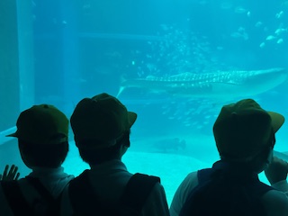 間近で大きなサメを見ると、迫力があります。
