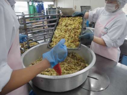 今日の給食を作っています。