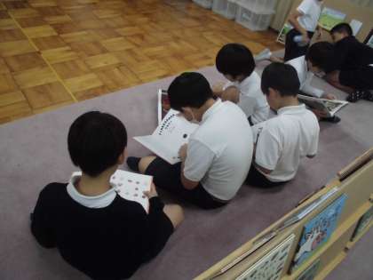 今週は読書週間です。多目的室にはたくさんの絵本が並べられ「絵本の広場」が開催中です。様々なジャンルの本があるので、面白そうな絵やタイトルに、ついつい本を手にとって読みたくなります。たくさんの絵本に触れあってほしいです。 読書週間中は読書の宿題もでます。お家でも親子で「読書の秋」を取り組んでください。よろしくお願いいたします。