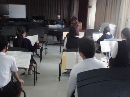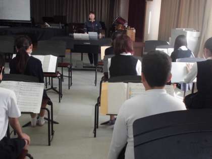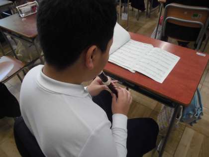 リコーダーで「sound of Music」の曲の練習を、音楽室では、歌「地球星歌」の歌唱練習をしています。