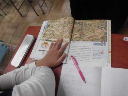 今日の学習は、「長篠の戦いがあったころの世の中様子について知ろう」がテーマです。長篠合戦図をみながら、織田、徳川連合軍と武田軍との戦いの様子で気づいたことをノートにまとめます。