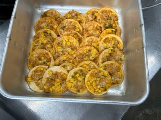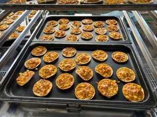変わりピザを作っています。餃子の皮を生地にしてピザを作っています。