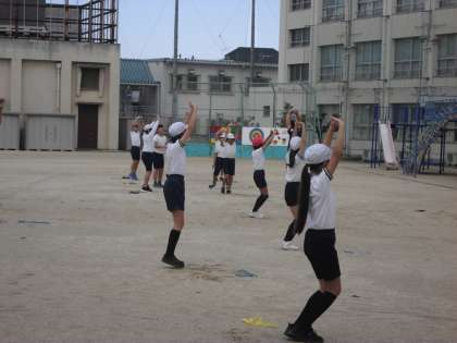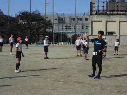 スポーツトレーナーの先生が来てくださり、全学年に体力向上授業をしてくださいました。今日は、なわとびを使った体力向上です。体をやわらかくするストレッチや縄の回し方、とび方など、いろいろなコツを教えていただきました。