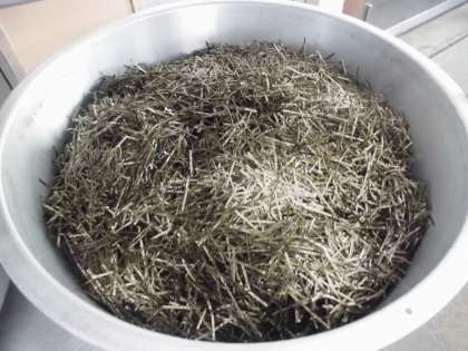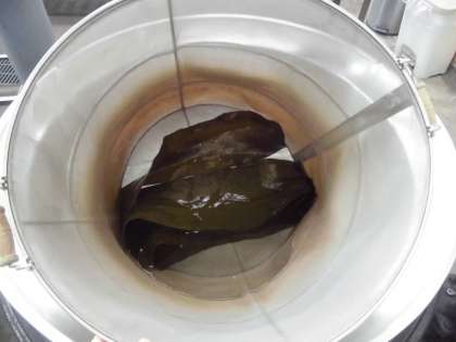 つくだ煮とは、魚や海藻などをしょうゆや砂糖、みりんなどの調味料で煮つめたものです。今日の給食では、砂糖やみりん、しょうゆなどの調味料とだしを合わせ、しいたけときざみのりを入れて煮つめて作ります。ごはんがすすむ一品です。