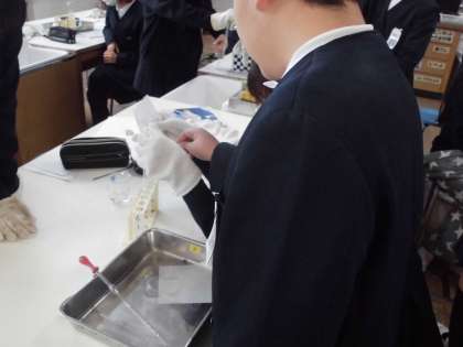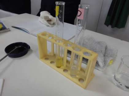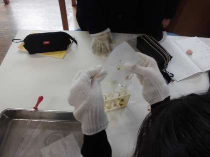 今日は、「うすい塩酸に鉄やアルミニウムを入れると溶けた。その溶けたものを蒸発させると、鉄やアルミニウムを取り出せるのか」の実験をしました。