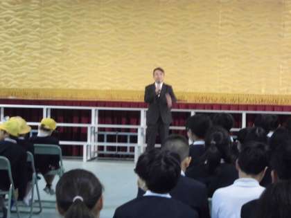 校長先生のお話からスタートです。各学年の演技をしっかり観て、違いを認め合い称賛し合う発表会にしましょうとお話いただきました。さあ各学年の発表のスタートです。
