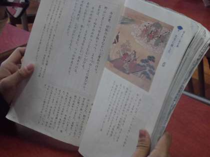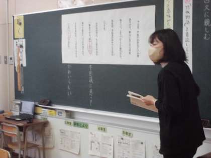 「古文に親しむ」の学習です。今日は、「竹取物語」について学習しました。古文と現代文を読み比べて、今と昔の言い方の違いを読み取りました。