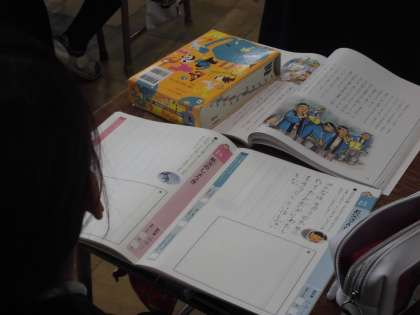 今日の道徳は、「国や郷土を愛する」がテーマで、「お父さんのじまん」というお話です。「いなむら火祭り」に参加したよし子は、お父さんの本当の自慢が何だかわかった気がしました。