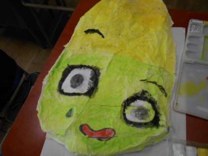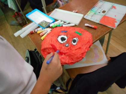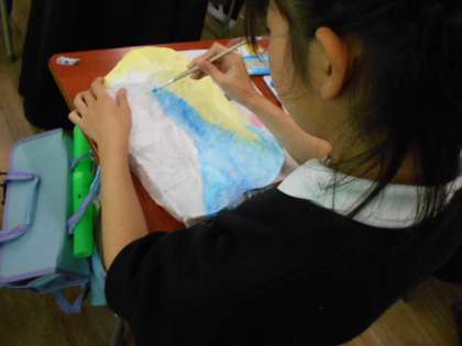 お面の色を塗りました。ユニークなお面がたくさん出来上がりました。