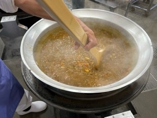 みんな大好き、ハンバーグカレーを作っています。カレーもおいしくなるようにしっかり煮込みました!