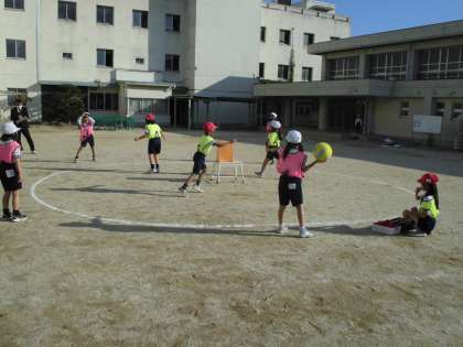 的あてゲームをしました。どのように動いたら的を倒すことができるかを考えました。