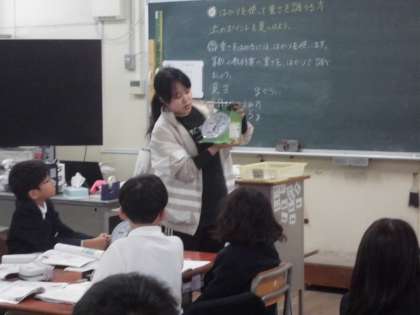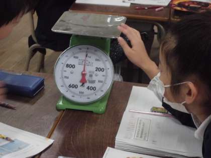 今日の算数は、「はかりを使って重さを調べる方法を見つけよう」です。はじめてはかりを使います。はかりの使い方をしっかりと確認しました。