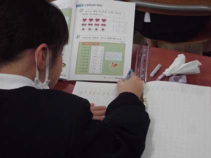 長かったかけ算の九九も最後の段です。今日は、「1のだんの九九」の学習です。みんな「かんたんや〜」と余裕そうです。