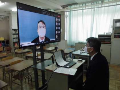児童朝会 校長先生のお話です。