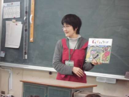 もう一つのクラスでは、「しんぞうとひげ」のお話です。「バウカー」(はじめるよ)「バカワー」(はーい)といって始まるアフリカの昔話です。東アフリカはタンザニア、ザンジバル島の民話です。