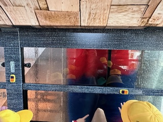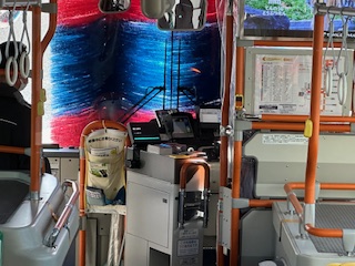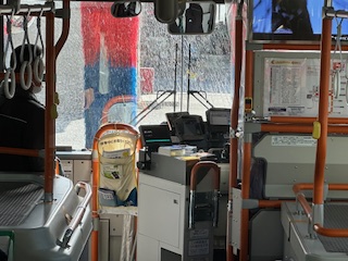 バスに乗って洗車機の中を通りました。子どもは大きな歓声をあげていました。