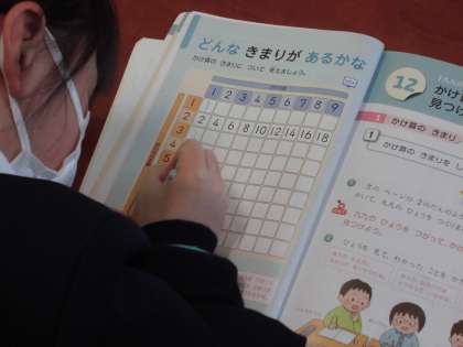 かけ算のきまりには、どんなきまりがあるのか、九九の表を見ながら考えました。