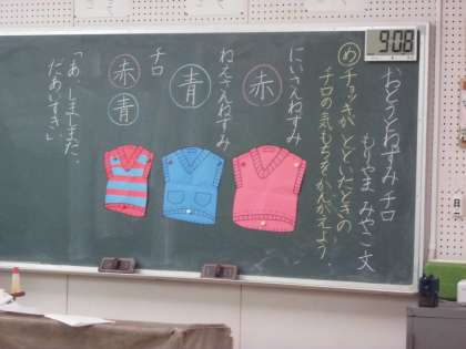 「おとうとねずみチロ」の学習です。今日は、チョッキが届いた時のチロの気持ちを考える学習です。
