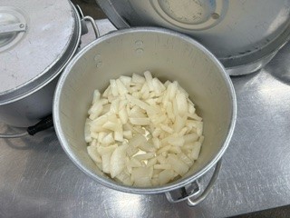 今日の給食で使う大きなかぶが届きました。かぶのゆず風味を作ります。
