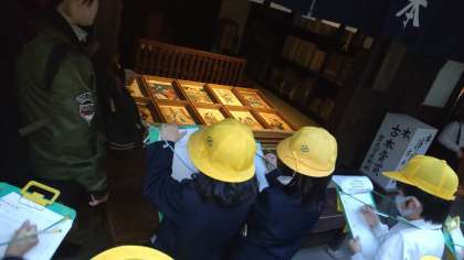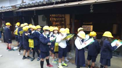 江戸時代にタイムスリップしました。子どもたちは熱心にメモをとっていました。昔のトイレ事情についても学習しました。