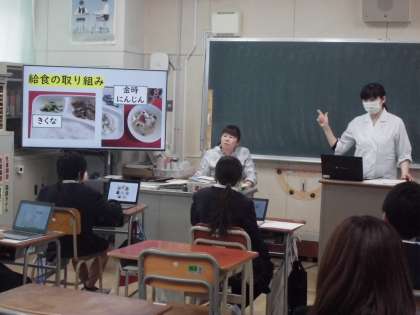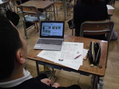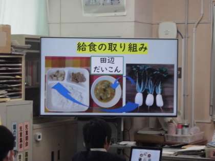 6年生の食育では、「大阪うまいもの探検」で、大阪の伝統野菜について学習しました。給食で使われているなにわの伝統野菜についても知ることができました。その後、一人一台パソコンを使って栄養のバランスを考えた献立を考えました。
