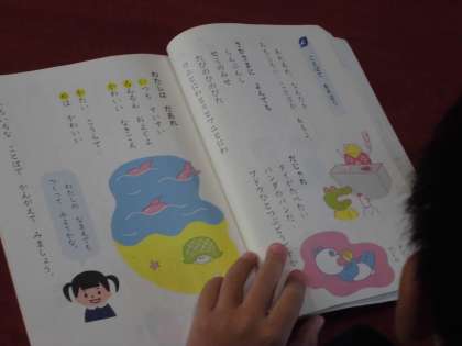「ことばで あそぼう」の学習です。あれあれ、なんだか おもしろい ことばが あるよ。 今日は「さかさまによんでも…」のことばあそびです。