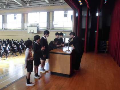 先日行われた都島区子ども会のドッジボール大会で活躍した子どもたちに賞状とトロフィーが送られました。