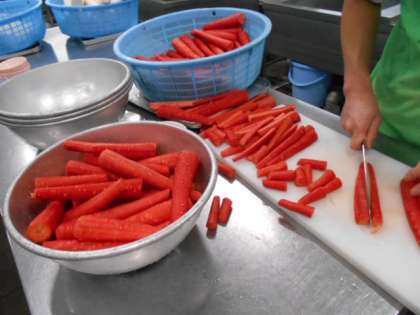 上の写真は、お雑煮で使われる、なにわの伝統野菜「金時人参」の写真です。別名「京人参」ともよばれ、関西でよく使われています。この金時人参がお正月に使われる理由は、