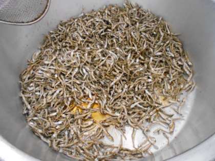 下の写真は、ごまめです。「田作り」とも言われます。昔、肥料としてイワシを田にまいたところ、豊作になったことから、豊作を願う気持ちが込められています。